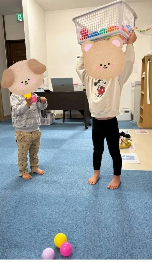 かごの中にボールを入れる遊びをしたよ!